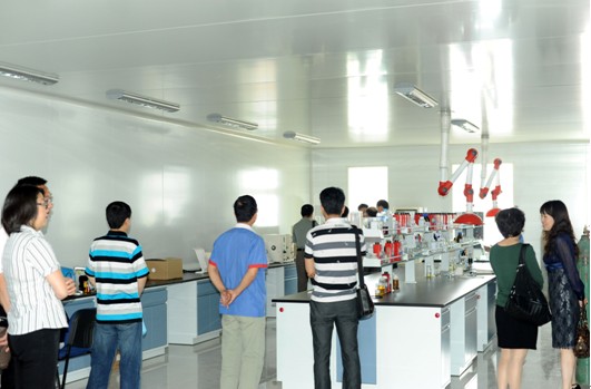 驗收會結束后,以呂杰校長為首的專家組參觀了公司的研發中心,對公司崇尚的文化、配備的實驗設備和嚴謹的科研態度進行了高度的肯定與贊揚,呂校長表示十分愿意與奧吉娜進行產學研相關合作。